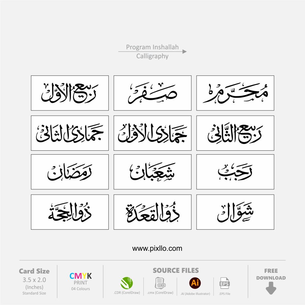 12 Islamic Months Name Urdu Vector CDR Design Template .cdr / .ai (CorelDraw & Adobe Illustrator) is specially designed CorelDraw & Adobe Illustrator for graphic designers and freelancers they can use in wedding cards, Invitation Cards, and etc.