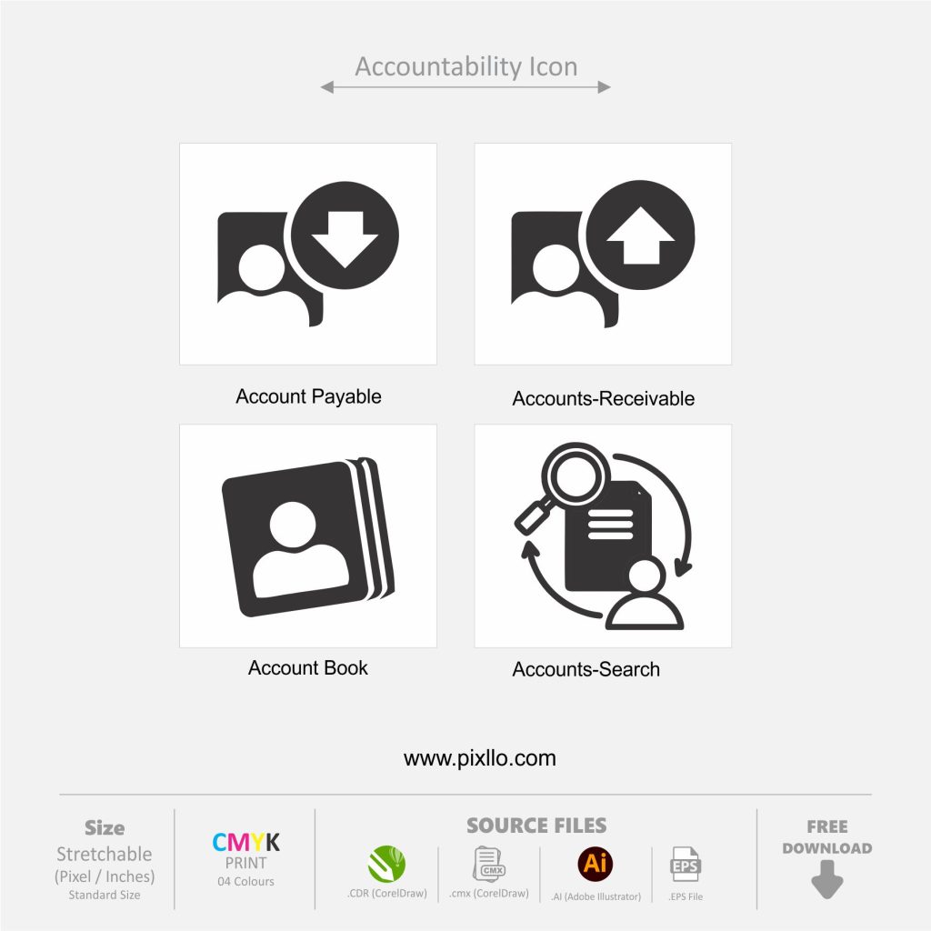 Accountability Icons , for all types of graphics .cdr / .ai / .eps / .cmx / .svg (CorelDraw & Adobe Illustrator) is specially designed for graphic designers and freelancers but you can use any type of digital agency, corporate and small big companies.