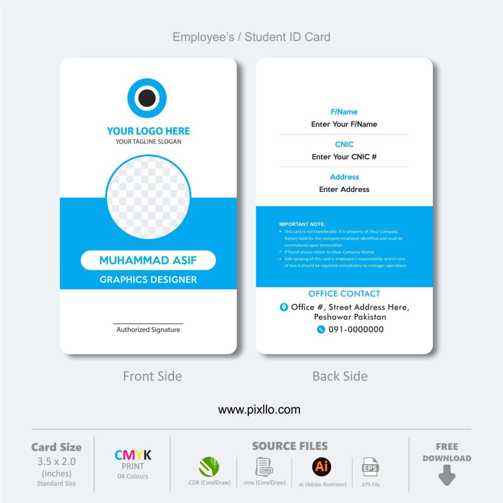 Employee ID Card Design Template .cdr / .ai (CorelDraw & Adobe Illustrator) is a specially designed CorelDraw & Adobe Illustrator for graphic designers and freelancers but you can use a Student Card and Employee ID Card of digital agency, corporations, and small or big companies.